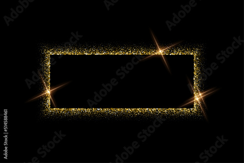The watermark will not be included on Poster.: Rectangle gold frame from glitters with bright glow light effect vector illustration - abstract golde