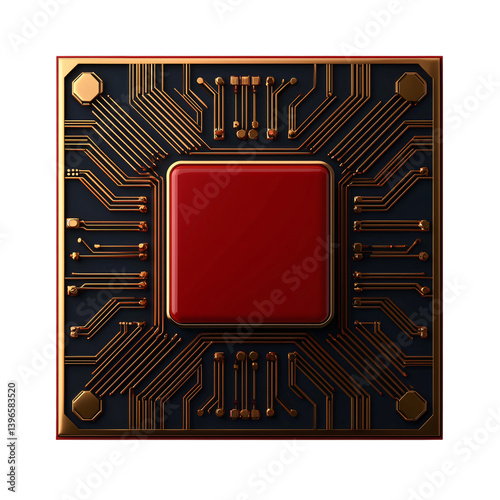 Poster red and gold microchip circuit board technology closeup abstract digital design