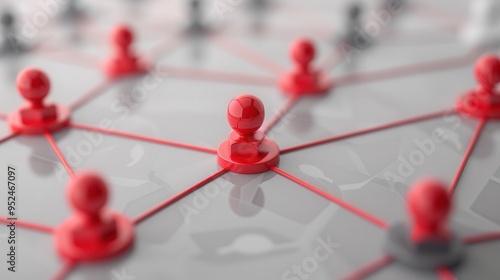 Poster red and gray user icons interconnected on a white backdrop, symbolizing social connections within a  - Posters Poster red and gray user icons interconnected on a white backdrop, symbolizing social connections within a - Posters