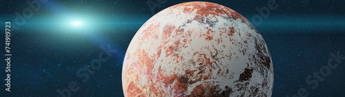 Poster red fiction maars planet with atmosphere in outer space. ultrawide 3d render illustration elements o