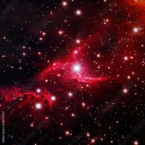 The watermark will not be included on Poster.: Red nebula with stars in the background glowing in a cosmic space environment