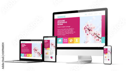 Poster : Responsive design website homepage devices collection mockup