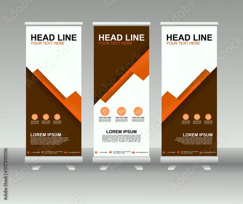 Roll up banner stand - modern vertical flag banner template design with abstract background can be usPoster