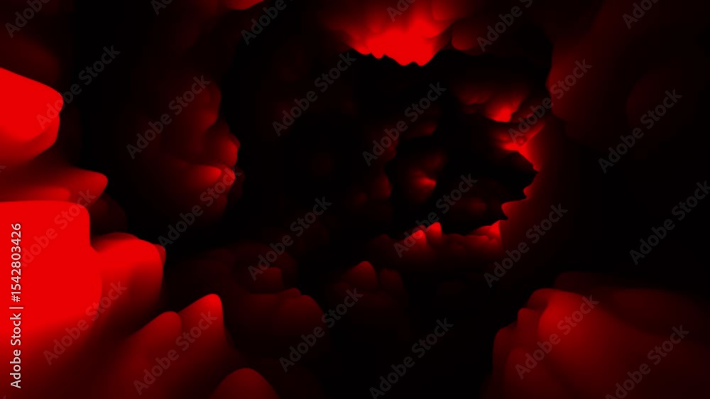 The watermark will not be included on Poster.: Scary abstract dark orange red loop tunnel background -