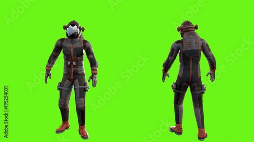 The watermark will not be included on Poster.: Sci fi man jumping - loopable animation on green screen - 4k -