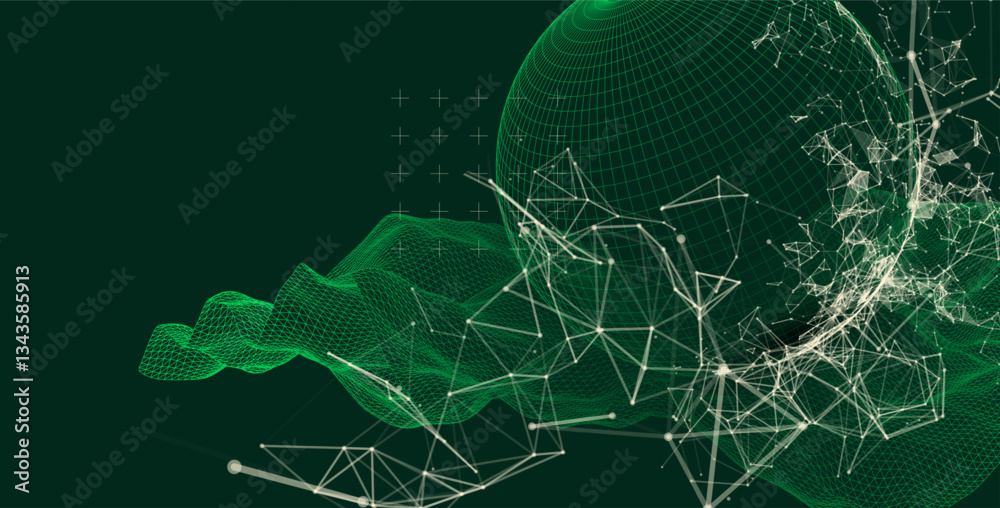 The watermark will not be included on Poster.: Science fiction background - abstract image of wireframe wave and sphere with plexus effect -