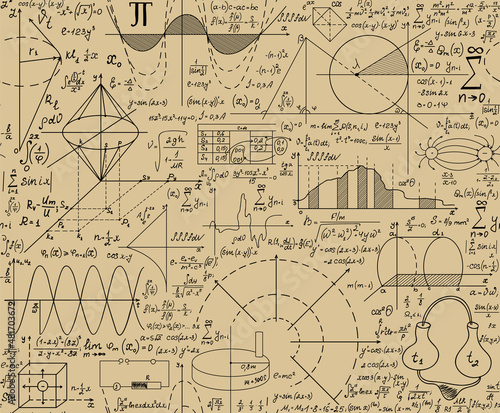 Poster scientific vector seamless pattern "handwritten on the old grey paper" with physical and math formul - Posters Poster scientific vector seamless pattern "handwritten on the old grey paper" with physical and math formul - Posters