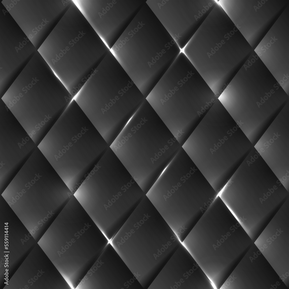 Poster seamless illustration of blue background with shiny geometric grid. rhombic pattern with light spark