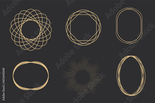 Poster set golden celestial frames, borders, arch line art esoteric minimal decoration with sparkles isolat