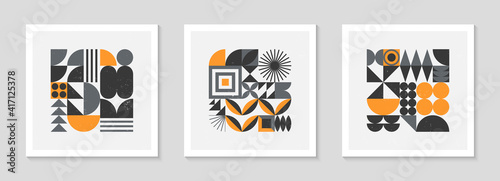 Poster : Set of abstract bauhaus geometric pattern backgrounds - trendy minimalist geometric design with simple