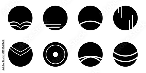 The watermark will not be included on Poster.: Set of abstract circular icons - various black abstract circles - minimalist vector art isolated on