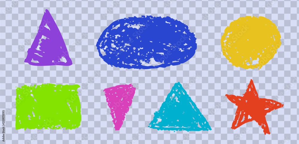 The watermark will not be included on Poster.: Set of abstract geometric basic shapes drawn with colored charcoal - hand drawn paint quote frame col