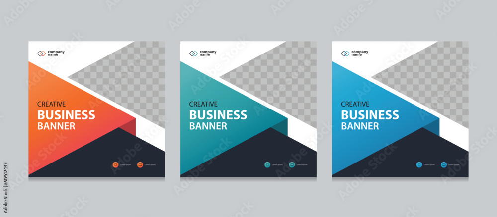 Set of editable square business web banner design template - background gradients color - suitable forPoster