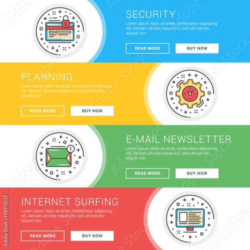 Poster : Set of flat line business website banner templates - vector illustration - modern thin line icons in c