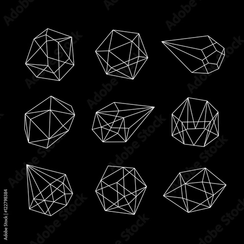 The watermark will not be included on Poster.: Set of geometric crystals - geometric shapes - vector graphics collection