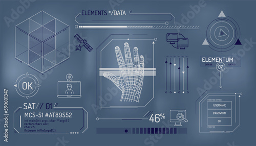 The watermark will not be included on Poster.: Set of infographic elements about satellite internet and network security -