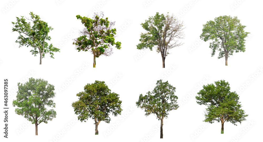 Poster : Set of isolated trees on white background , the collection of trees
