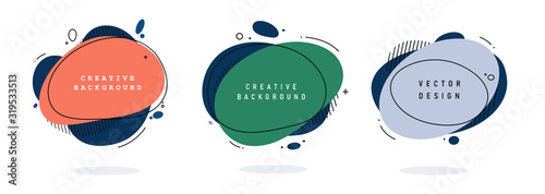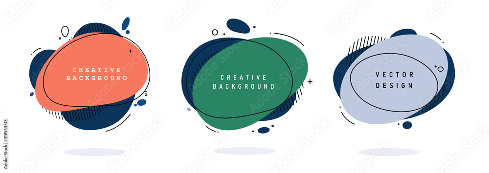 The watermark will not be included on Poster.: Set of modern abstract vector banners - flat geometric shapes of different colors with black outline