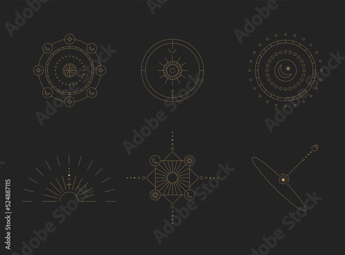 The watermark will not be included on Poster.: Set of moon and sun line art - minimal boho linear symbols - celestial mystic element - vector line art