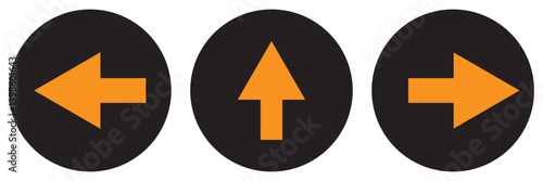 Poster : Set of one way only or this way only blue sign round floor marking adhesive sticker icon with direct