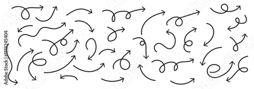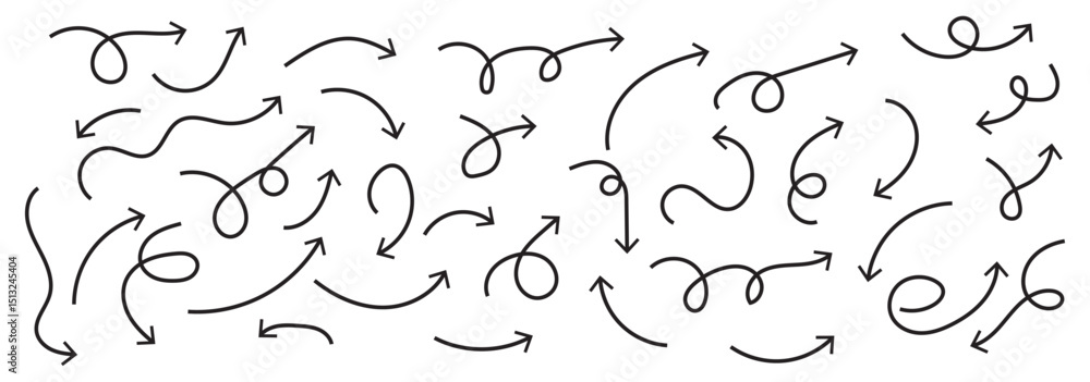 The watermark will not be included on Poster.: Set of simple lines hand drawn black arrows in various style - set of simple of hand drawn black arro