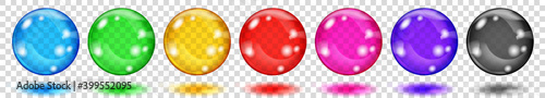 Poster : Set of translucent colored spheres with glares and shadows on transparent background - transparency o