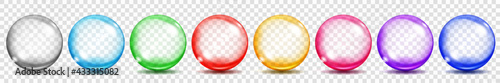 The watermark will not be included on Poster.: Set of translucent colored spheres with glares and shadows on transparent background - transparency o