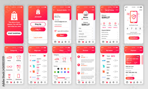 The watermark will not be included on Poster.: Set of ui, ux, gui screens shopping app flat design template for mobile apps, responsive website wir
