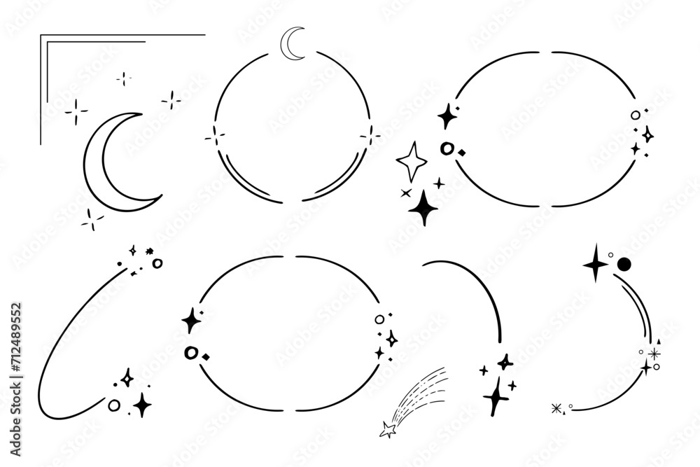 The watermark will not be included on Poster.: Set star sparkle silhouette celestial line frames abstract shape borders isolated on white backgroun