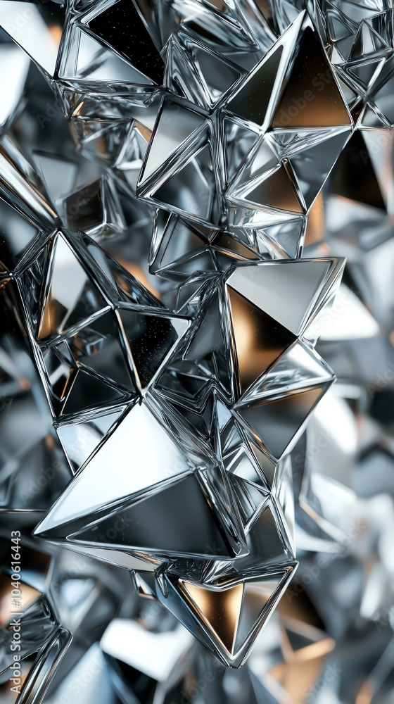 The watermark will not be included on Poster.: Sharp angular geometric patterns with metallic textures and light reflections