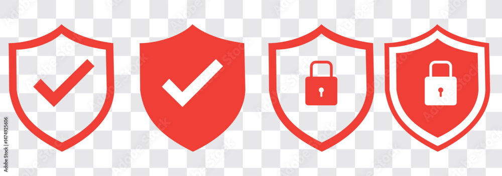 The watermark will not be included on Poster.: Shield check mark icon and shield lock icon set - safety shield symbols - security private sign - vecto