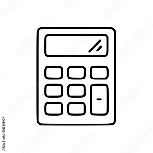 The watermark will not be included on Poster.: Simple black and white illustration of a calculator with a display and buttons drawn in a minimalist