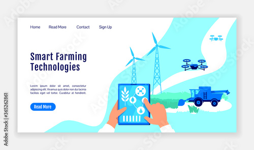 The watermark will not be included on Poster.: Smart farming technologies landing page flat color vector template