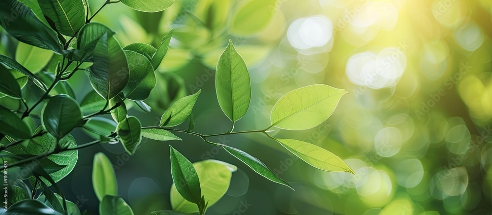 Poster soft focus creates a beautiful green leaves background offering a selective view with ample copy spa