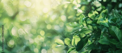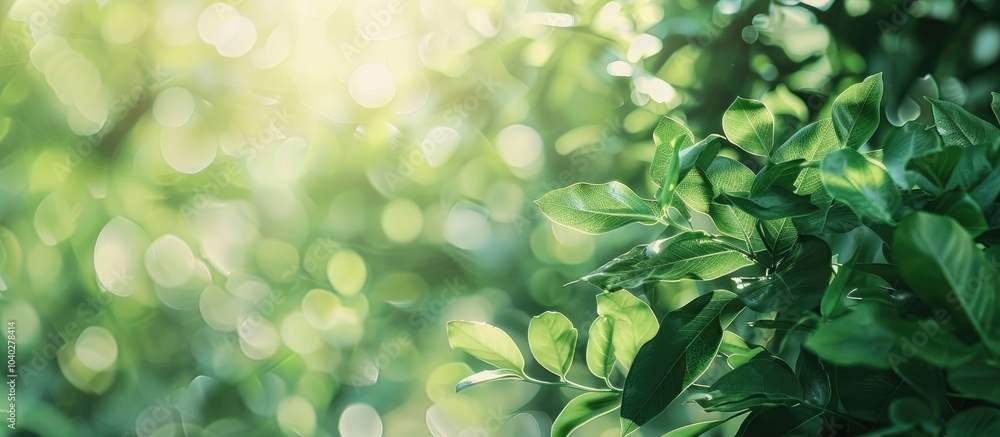 Poster soft focus green leaves background with a selective focus area for a copy space image