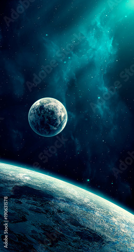 Poster space scene. blue nebula with planet. elements furnished by nasa. 3d rendering - Posters Poster space scene. blue nebula with planet. elements furnished by nasa. 3d rendering - Posters