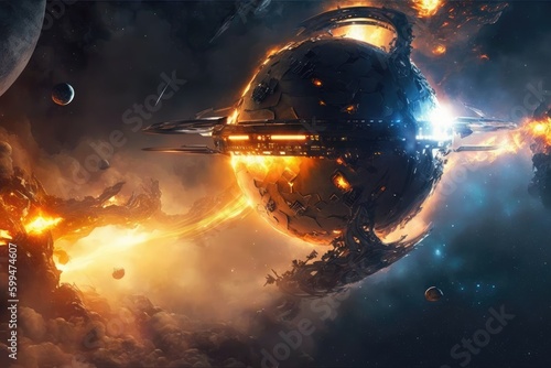 Poster : Space war human and alien in outer space for star colony - distinct generative ai image -