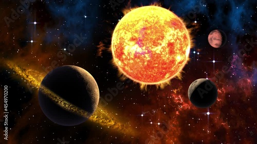 The watermark will not be included on Poster.: Spacescape background slowly moving through planetary system universe galaxies stars and nebulae