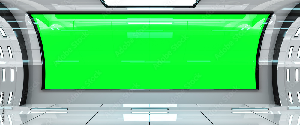 The watermark will not be included on Poster.: Spaceship bright interior with 3d rendering