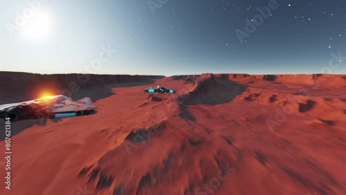 Poster : Spaceships flying on a desert planet in deep space