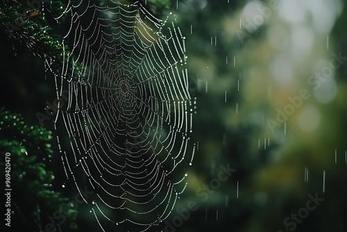 Poster spider web with dew drops