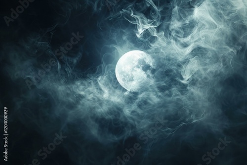 The watermark will not be included on Poster.: Spooky full moon surrounded by smoke and clouds creating a mysterious atmosphere
