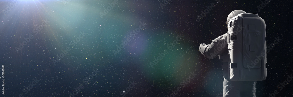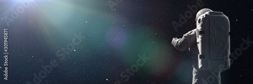Poster standing astronaut looking into empty space