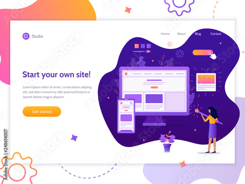 Poster : Start your own site - web banner template - website builder concept - flat vector illustration -