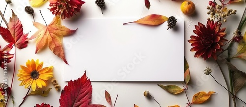 Poster stunning fall arrangement with a blank card in the backdrop of a white surface for copy space image - Posters Poster stunning fall arrangement with a blank card in the backdrop of a white surface for copy space image - Posters