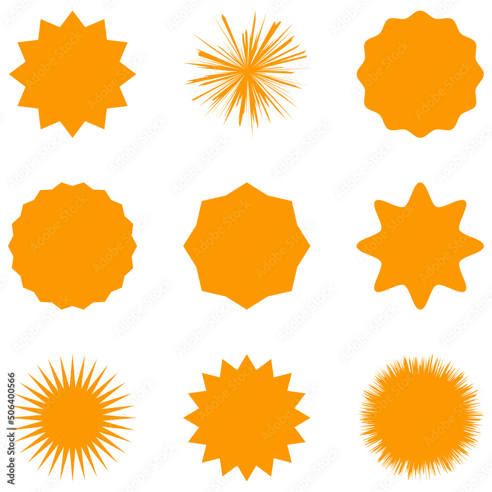 The watermark will not be included on Poster.: Sun vector icon - sun rays in different shapes - vector illustration