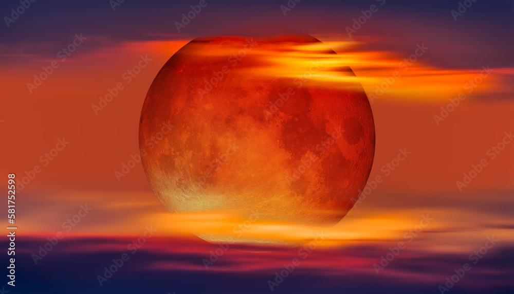 The watermark will not be included on Poster.: Sunset sky with full moon in the clouds "elements of this image furnished by nasa