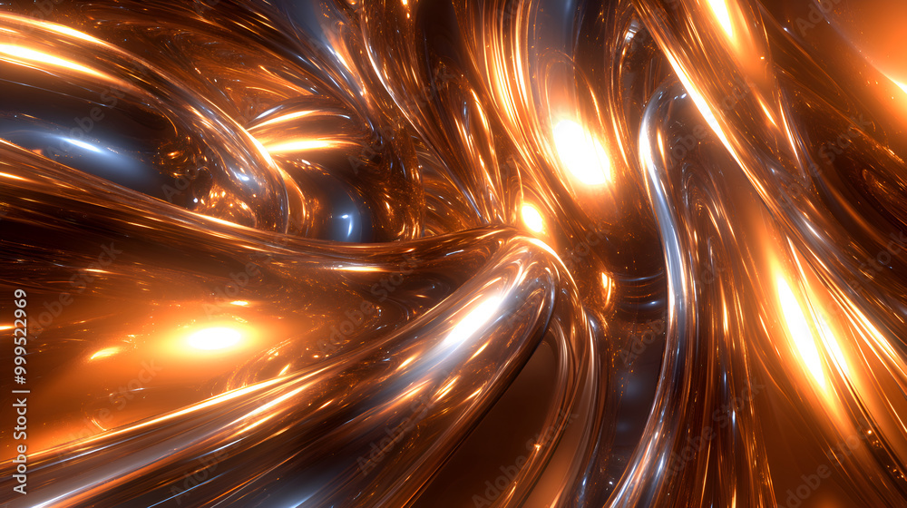 Poster swirling metallic patterns in vibrant orange and gold hues create a mesmerizing abstract composition