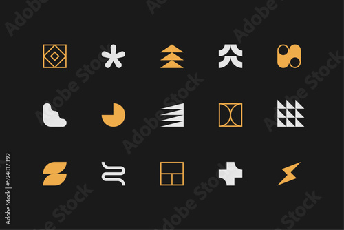 The watermark will not be included on Poster.: Symbols set - abstract and basic shapes - geometric forms - minimalist icons - flat vector concept - mode