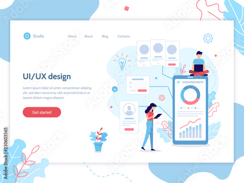 The watermark will not be included on Poster.: Team of developers construct mobile app - business concept - web banner design template - flat vector i